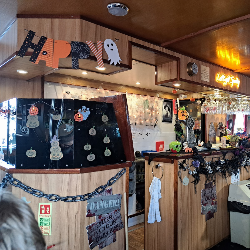 The skipper welcomed us upon boarding with a friendly smile and a little chat. Then we headed downstairs to the seating area as it was a hot day and we didn’t want to sit in the sun. The main area has the bar in it where you can get an ice cold pint, a glass of wine, spirits, soft drinks, hot drinks and snacks and treats including ice cream. All at reasonable prices which was a pleasant surprise.