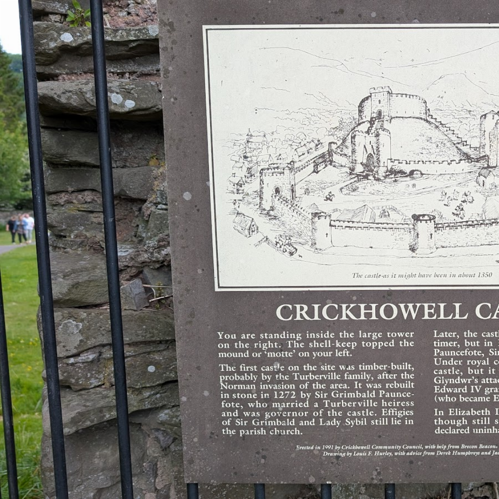 It was originally a Norman motte and bailey fortification built of timber in the 12th century. You can climb the motte and look around at the incredible views as well as a second tower of the ruined castle. All that currently remains is a tower and partial gatehouse. Destroyed by Owain Glyndwr and his army.
