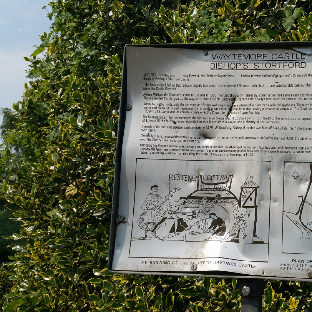 In Bridge Street, Bishops Stortford, lie the foundations of the rectangular keep of Waytemore Castle, and a pleasure garden has been developed where the bailey used to be.